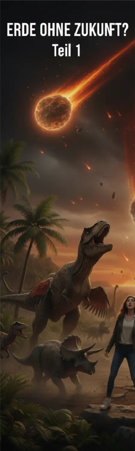 Im Schatten eines Farns beobachtet ein winziges Morganucodontide, ein früher Vorfahr der Säugetiere, die gigantische Prozession. Es ist ein stiller Zeuge der Beständigkeit. Doch die Chronik des Lebens lehrt eine bittere Wahrheit: Die Reptilien und Dinosaurier existierten über 350 Millionen Jahre. Die Gattung Mensch wird die 9-Millionen-Marke nicht erreichen. Und der Homo Sapiens selbst? Mit seiner zerstörerischen Intelligenz wird er es kaum über die 300.000 Jahre Existenz hinausschaffen. Der Moment, in dem das kleine Säugetier die Giganten beobachtet, ist der Moment vor dem großen Fall – nicht nur für die Saurier, sondern auch für jene Spezies, die sich für die Krone der Schöpfung hielt.