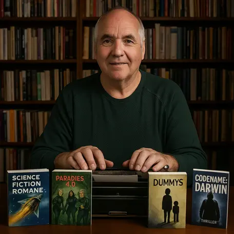 Mein Debüt als Autor hatte ich mit dem Drehbuch zum packenden Thriller "Darwin: Zeit zu töten", das die Grundlage für meinen ersten Roman bildete. Dieses Werk markierte den Start meiner Karriere als Schriftsteller und öffnete ihm den Weg in die Filmindustrie. Nach meiner erfolgreichen und großartigen Zeit in Hollywood zog es mich nach Hamburg, zurück. Hier schrieb ich meine Science-Fiction-Reihe "Paradies 4.0", die ich Jahrzehnte vorher auf einer alten Ideal Schreibmaschine aus den 40iger Jahren entwickelte und zu Papier brachte. Diese ambitionierte Serie, die auch als Comic-Reihe adaptiert wurde, verbindet meine Begeisterung für Film und Technologie zu einem spannungsgeladenen Universum voller Intrigen. Ich nutze dafür mein umfassendes Wissen aus der Film- und IT-Branche, um dieses Science-Fiction-Projekt auf innovative Weise zu gestalten.